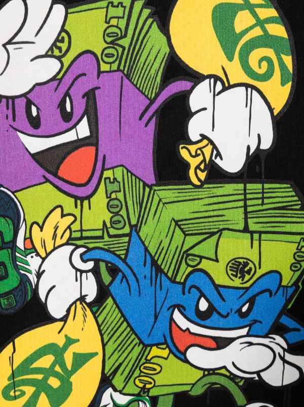 Black/multicolour cotton graphic-print cotton T-shirt from sprayground kid featuring graphic print to the front, round neck, short sleeves and straight hem.